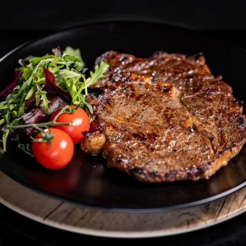 Antricot de manzat cu gorgonzola si rosii cherry 300/60/40g